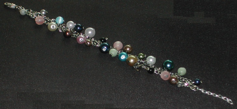 Kleur : Zilverkleurige schakelketting met diverse kleuren glaskralen.