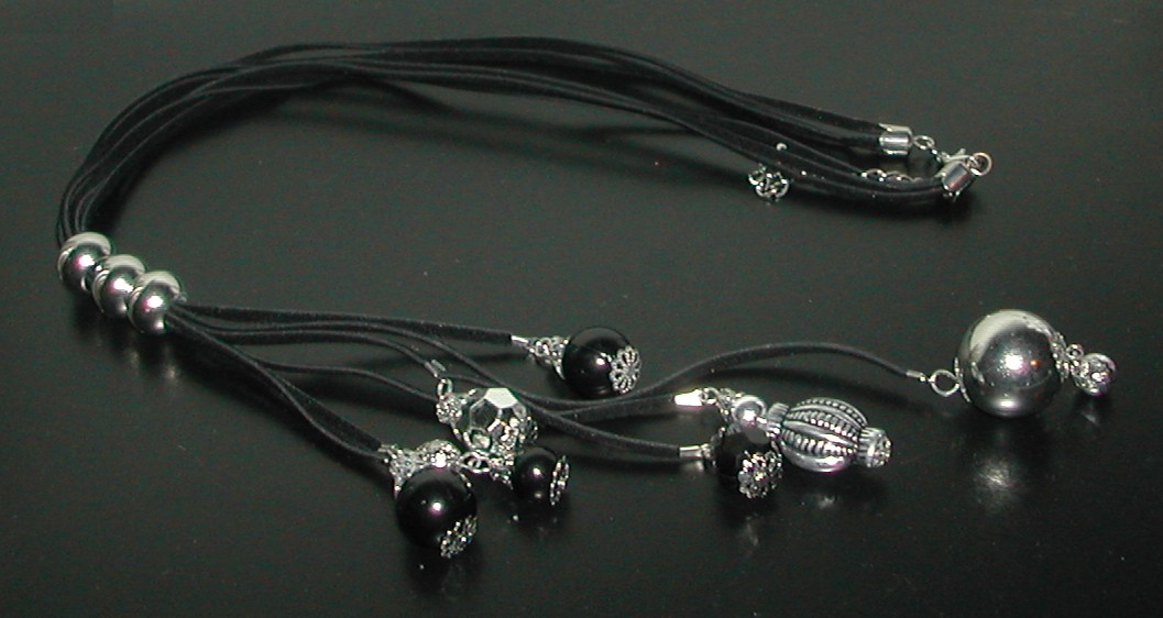 Materiaal : 6 Zwarte suede veters met kralen geketteld aan