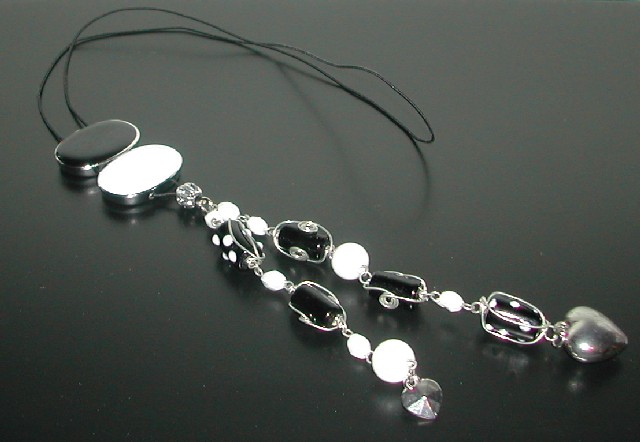 Materiaal : Zwart elastieken koord met grote zwart/zilver