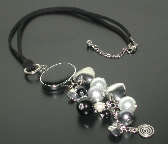 Materiaal : Zwarte suede veter met grote zwart/zilver ovalen