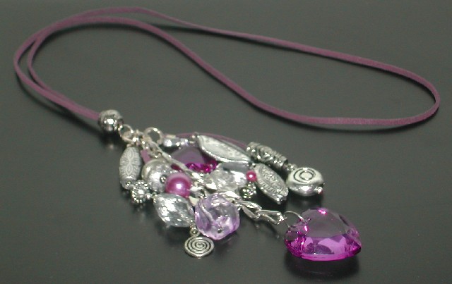 Materiaal : Paarse suede veter met grote tros waaraan diverse