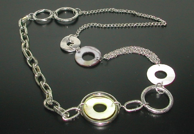 Materiaal : Zilverkleurige schakelketting met stevige schelpenrondjes