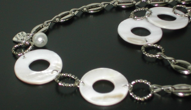 Materiaal : Grove zilverkleurige schakelketting met beige