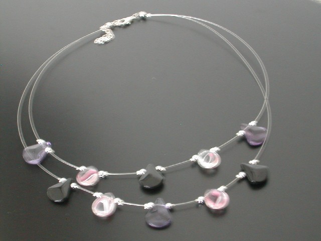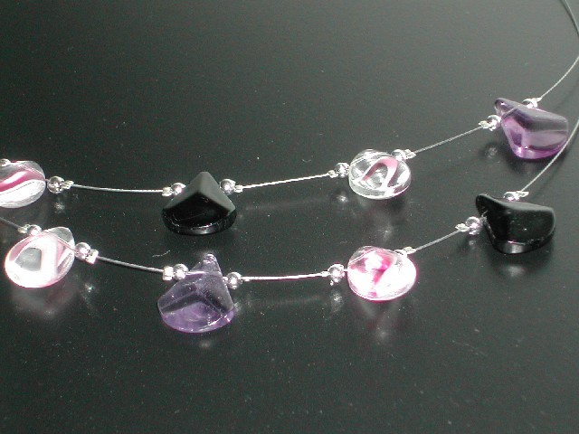Kleur : Zwart, grijs/paars doorzichtig en zilverkleurig. Door de flits lijkt het meer paars. Maar de kralen zijn meer grijs.