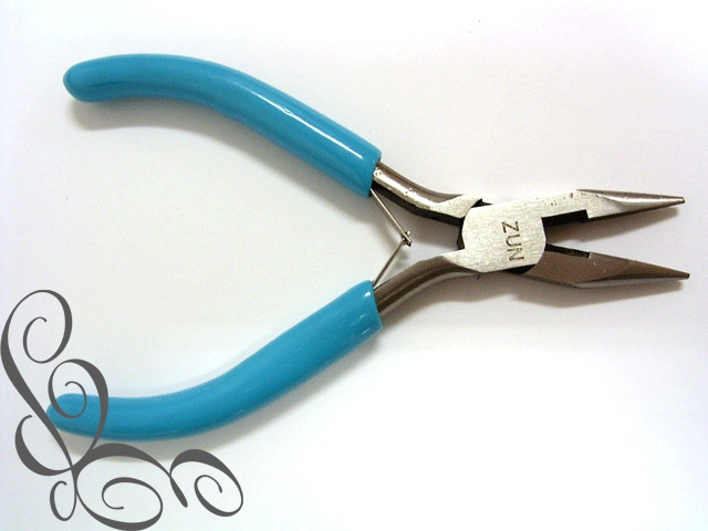Om zoveel mogelijk grip te hebben als je de oogjes verbindt gebruik je het beste twee gladde (dus zonder ribbels) platbektangen. Als je het open ringetje recht voor je hebt, probeer dan het ringetje niet naar links en rechts open te buigen, maar naar voren en naar achteren. Zo blijft de vorm van het ringetje behouden.